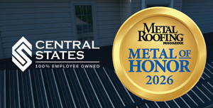 Central States Manufacturing, Tontitown, Ark., received a 2026 Metal of Honor Award from Shield Wall Media, publisher of Metal Roofing, Metal Builder and Roofing Elements. The award is driven by nominations and votes from customers and industry peers.