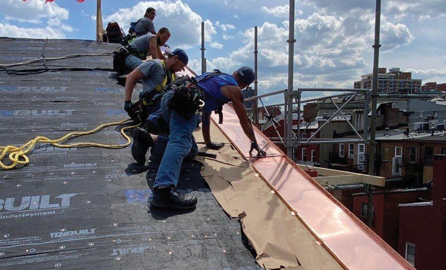 The roofing team was involved in the early stages of design and worked in conjunction with the project’s architect, Jim Suttner of Suttner Architecture LLC, Ruxton, Md., offering knowledge and input including pricing options and value engineering. Project specifications were developed, submitted and approved by the Commission for Historical and Architectural Preservation and Maryland Historical Trust.
